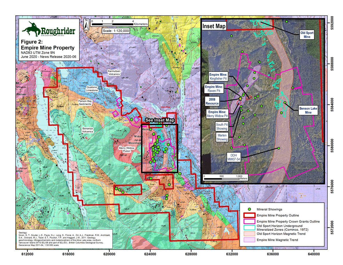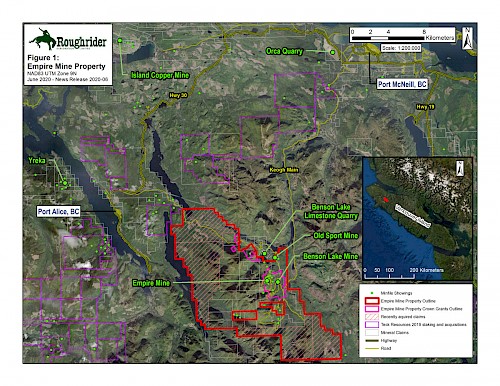 Vancouver, BC -- Roughrider Exploration Limited (TSX-V: REL) ("Roughrider" or the " Company") is pleased to announce it has signed a Binding Letter of Intent ("LOI") with Mirva Properties Ltd ("Mirva") to option a 100% interest in its Empire Mine Property (the "Property") located on Northern Vancouver Island, B.C, approximately 28 kilometers ("km") southwest of Port McNeill, B.C. (see Figure 1).